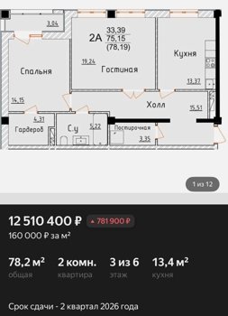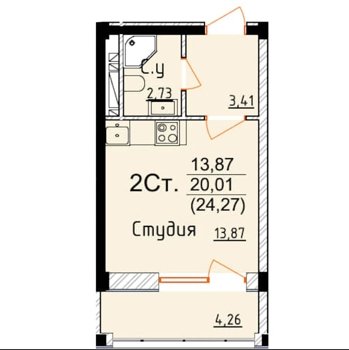 Площадь от 34.75 м2