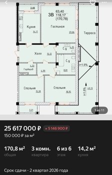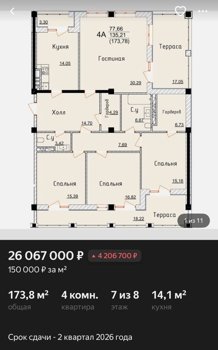 Площадь от 173.8 м2
